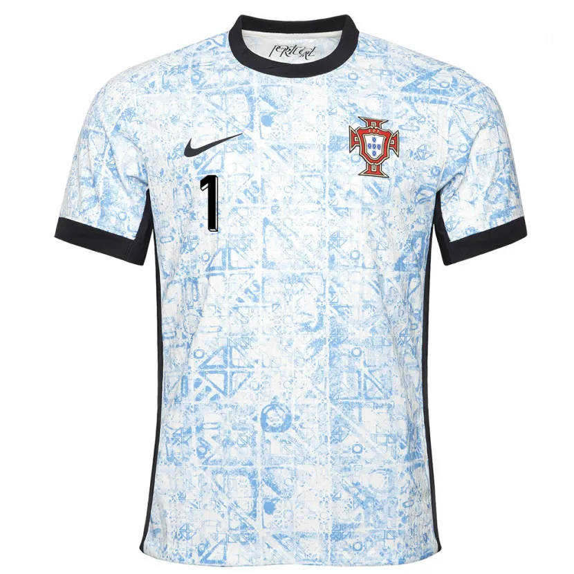 Danxen Criança Camisola Portugal Ines Pereira #1 Azul Creme Alternativa 24-26 Camisa