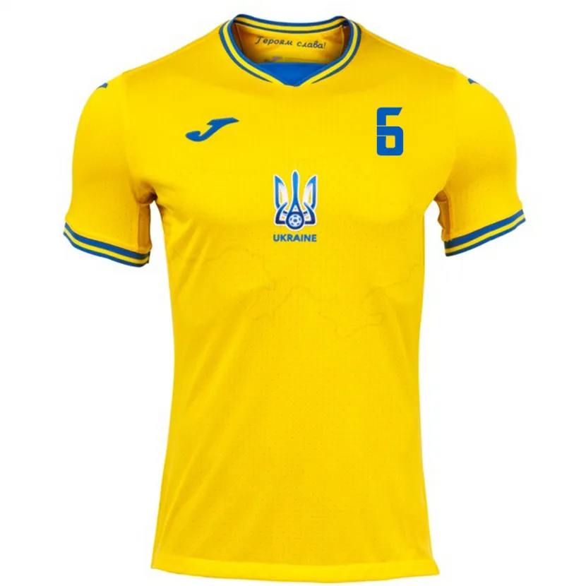 Danxen Criança Camisola Ucrânia Maksym Tsymbalyuk #6 Amarelo Principal 24-26 Camisa