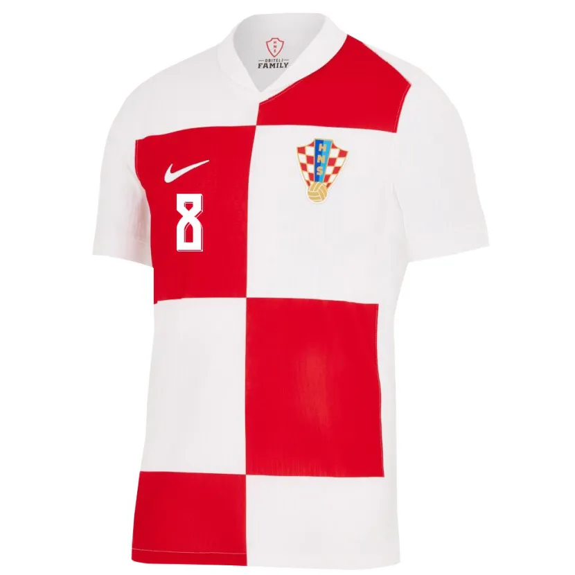 Danxen Homem Camisola Croácia Mateo Kovacic #8 Branco Vermelho Principal 24-26 Camisa