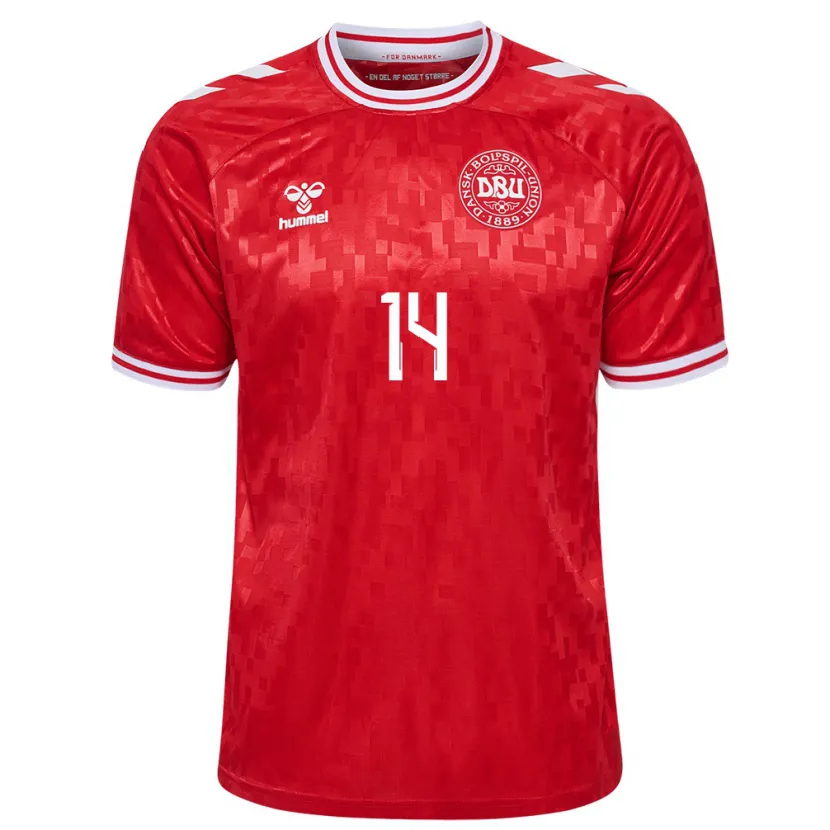 Danxen Homem Camisola Dinamarca Matilde Lundorf #14 Vermelho Principal 24-26 Camisa