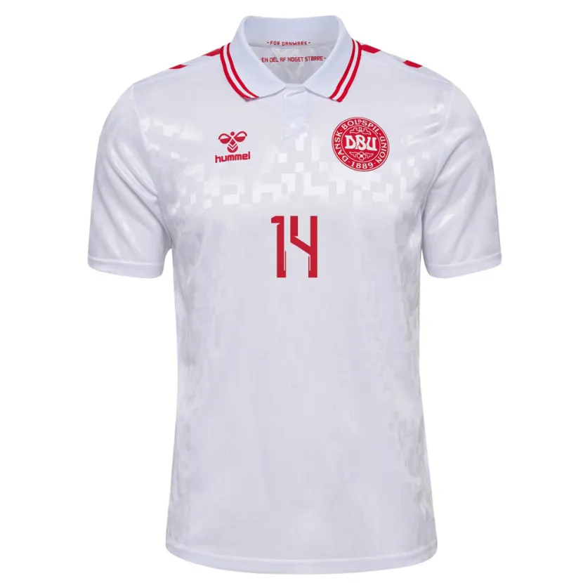 Danxen Mulher Camisola Dinamarca Mikkel Damsgaard #14 Branco Alternativa 24-26 Camisa