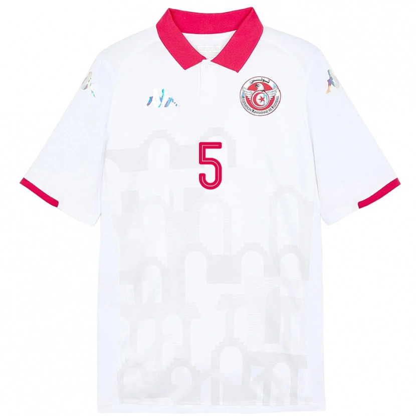 Danxen Mulher Camisola Tunísia Mohamed Ali Ben Romdhane #5 Branco Alternativa 24-26 Camisa