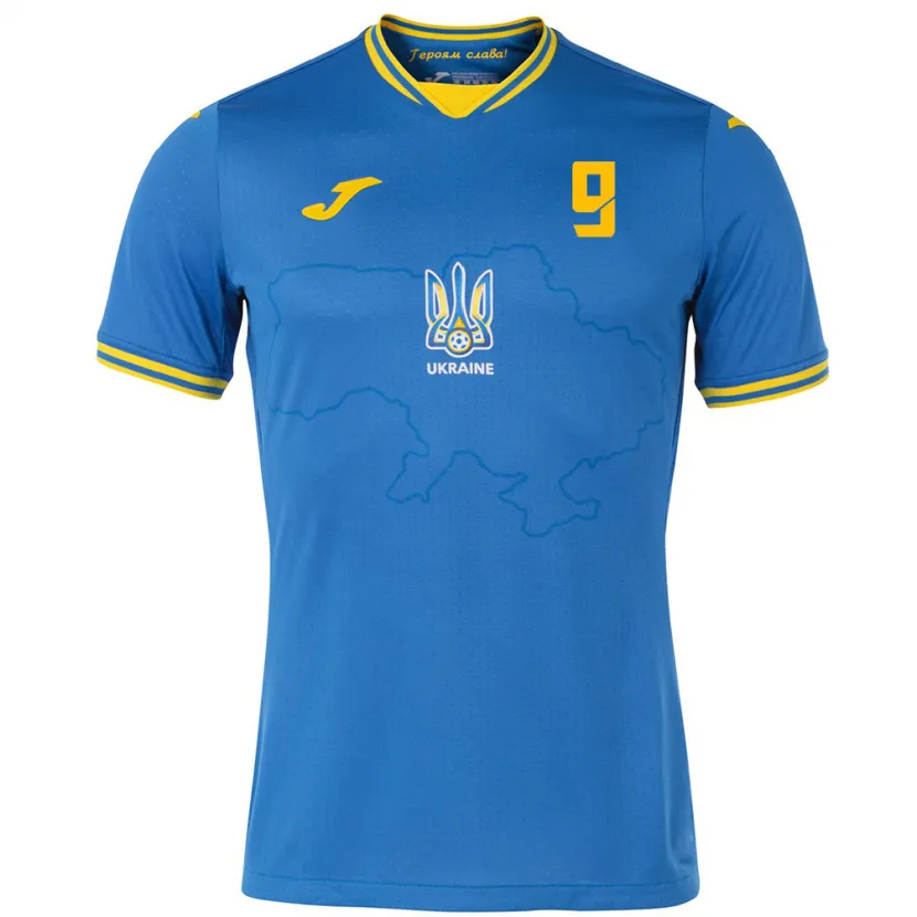 Danxen Mulher Camisola Ucrânia Matviy Ponomarenko #9 Azul Alternativa 24-26 Camisa