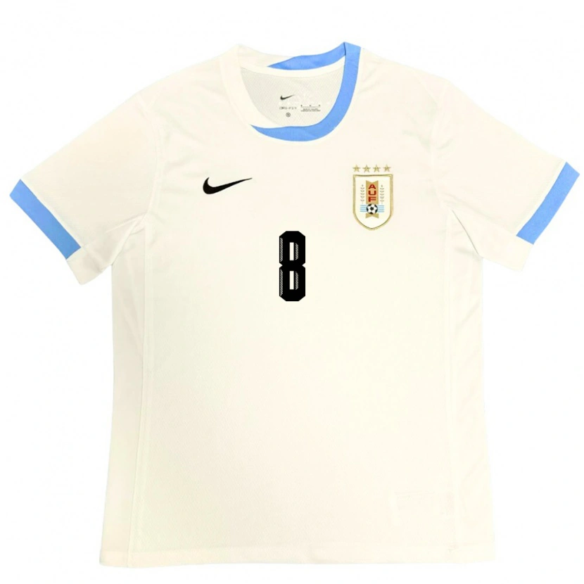 Danxen Mulher Camisola Uruguai Ximena Velazco #8 Branco Azul Alternativa 24-26 Camisa